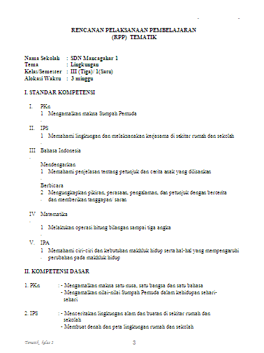 - (Download) RPP Kelas 3 Tematik Lingkungan Semester 1